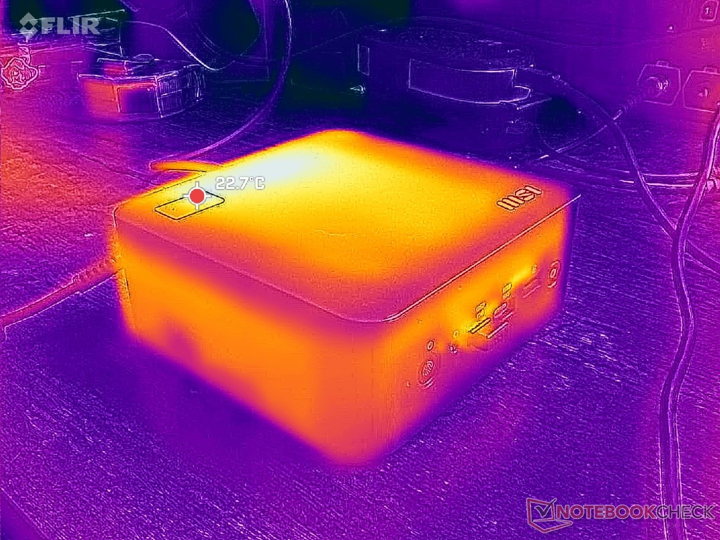 总体消耗量明显低于 AMD H 系列迷你电脑,如 GMK NucBox K12尽管我们的集成 Arc 140V 在游戏时与竞争对手的集成 Radeon 780M 大致相当。与 AMD Zen 4 或 Zen 5 处理器相比,微星 Cubi 的每瓦性能普遍较高,但这是以牺牲处理器的原始性能为代价的。