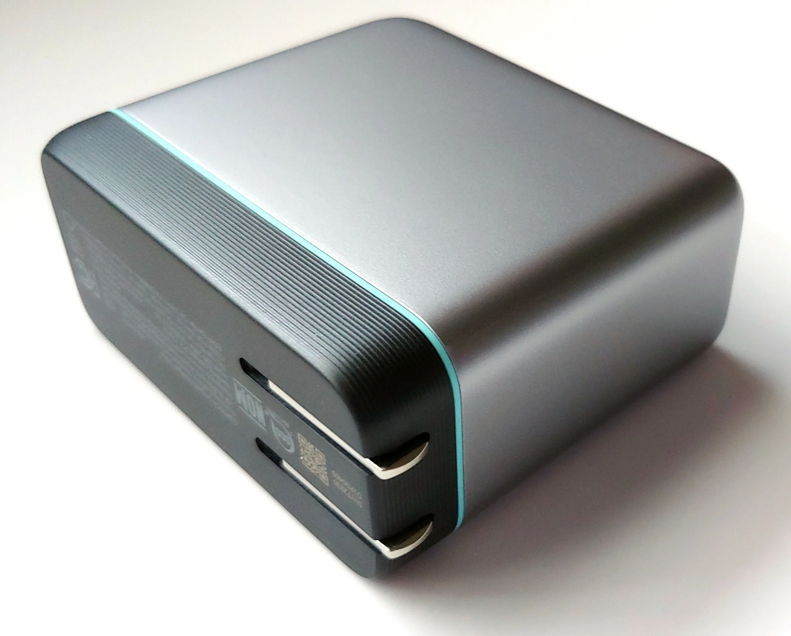 该充电器无法强制向所选端口提供最大功率,而是依靠充电电路在所有连接设备之间分配功率。由于设计原因,充电器主体与标准延长条上的相邻交流插头重叠。