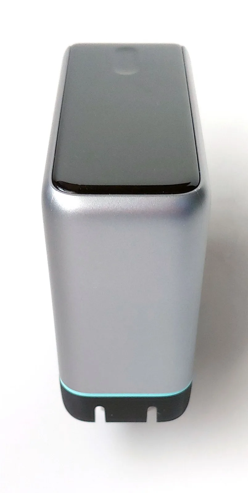 交流充电器设计简洁,边缘呈弧形,侧面平坦。四个 USB 端口排列在正面边缘,包括一个 USB-A 端口和三个 USB-C 端口,彩色显示屏和触摸按钮位于顶部。底部是可翻转的交流电插头。总的来说,它的设计很有品位,单手即可轻松掌握和使用。