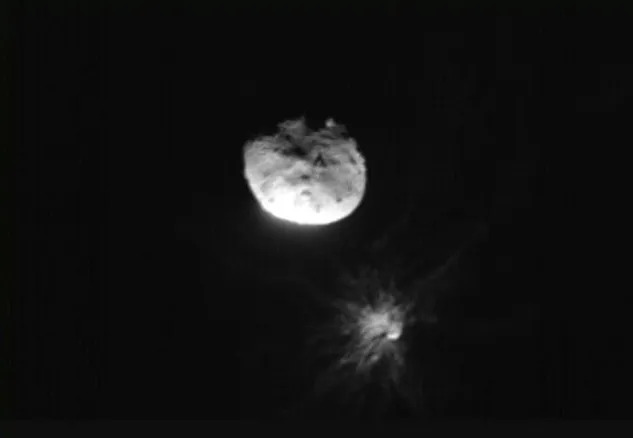 在此提醒大家,当 DART 探测器撞击小行星 Dimorphos 时,一团岩石碎片被喷射到太空中。这个天体的形状被改变了,而且还加速了。此外,它绕迪莫莫斯 12 小时的轨道周期缩短了 33 分钟。