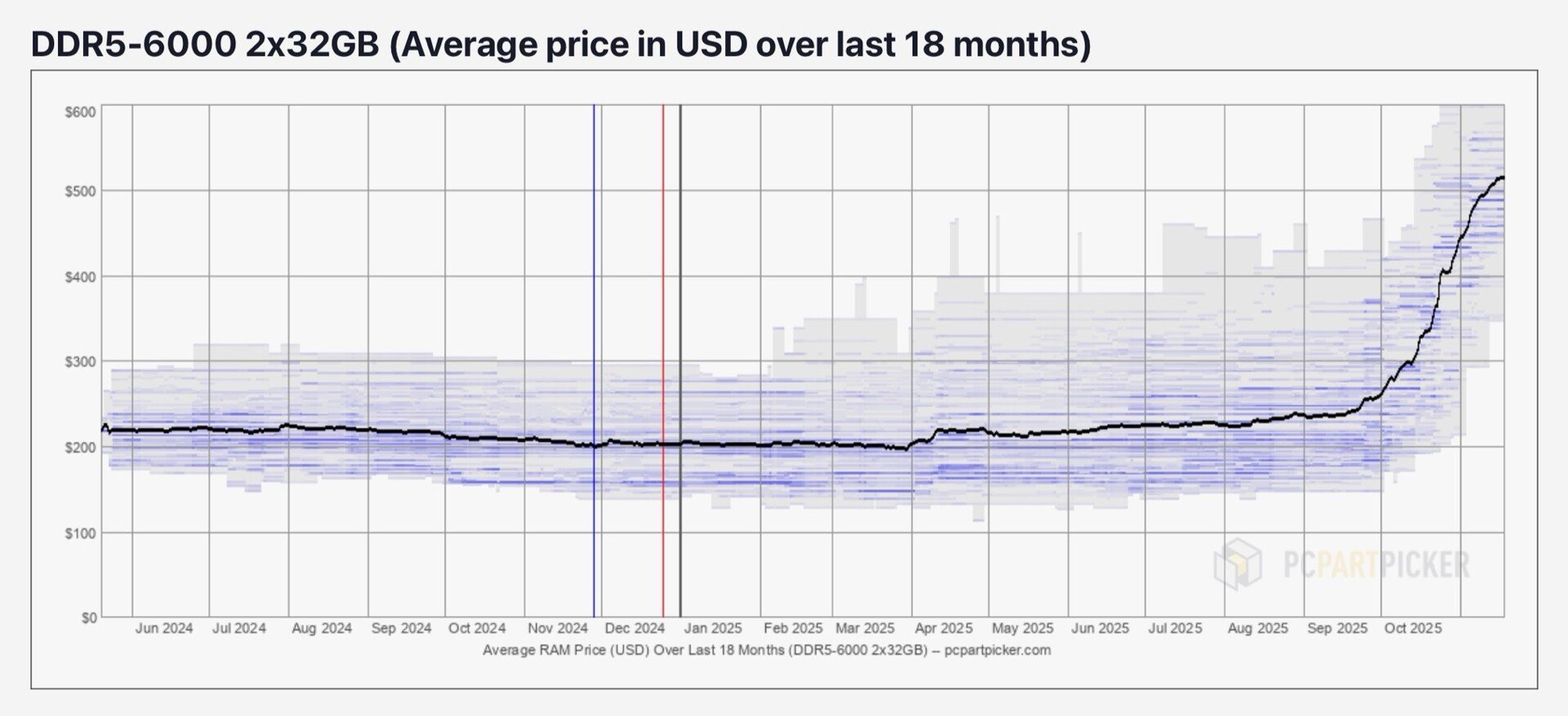更昂贵的 VRAM 可能会给价格较低的显卡带来麻烦,如配备 12GB 的 Intel Arc B580(亚马逊售价 249 美元起)或 Radeon RX 9060 XT和 NvidiaGeForce RTX 5060 Ti这两款显卡都配备了 16GB VRAM。根据韩国媒体Hankyung 的最新报道,DRAM 批发价格暴涨。的最新报告显示,仅在过去一个月里,DRAM 批发价格就暴涨了 137%。