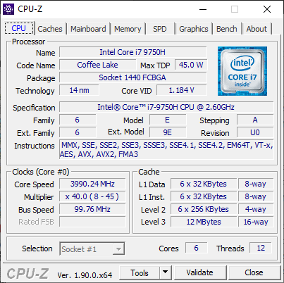 | Average Intel Core i7-9750H (170 - 194, n=82) | |