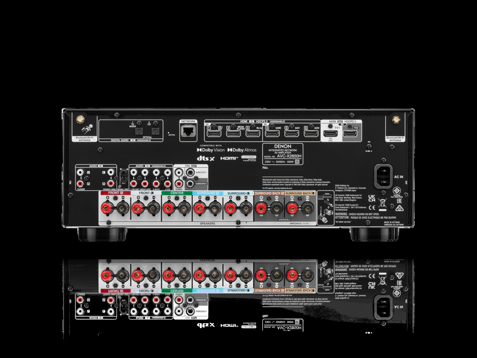 除了 8K 视频和 4K 升频外,Denon AVC-X2850H 还支持杜比全景声和 DTS:X 等功能。7.2 声道也可配置为 5.2.2 Dolby Atmos 或 DTS:X 设置。这家 AVR 制造商还承诺,由于采用了大电流放大器,并支持高达 24 位/192 千赫的播放格式,因此音质清晰、动感十足。
