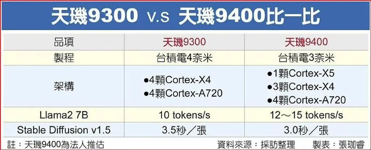 因此,该表(据称来自联发科官方的估计值 联发科据此,该表(据称来自联发科官方新闻资料的估算)显示,9400 可处理 12 至 15token(基本上是文本的最基本单位)。(基本上是 LLM 最基本的文本单位)。 Llama 2模型。