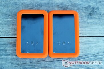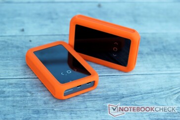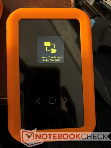 沿着前面有两个USB-C接口。一个用于数据传输和为硬盘供电,而另一个则作为15瓦的辅助电源。由于智能手机(和其他一些电子产品)在连接到机箱时可能无法提供足够的能量为硬盘供电,这个端口可以提供额外的15瓦特,以确保传输的可能性和稳定性。机箱的后部有一个单一的点击按钮,用于导航屏幕上的菜单。
