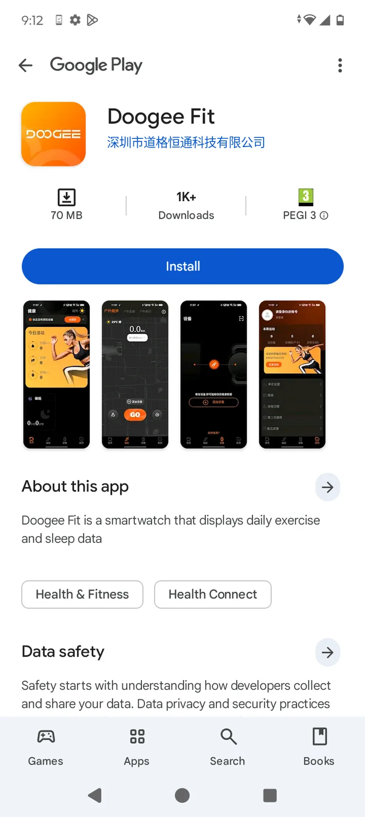 初始设置包括用智能手机扫描二维码。这将把用户带到一个看起来很基本的页面,上面有两个应用程序商店链接,一个是 iOS 的,另一个是Android 的。测试使用了一款运行Android 14 的经济型摩托罗拉手机;Doogee Fit 应用程序在这款手机上运行正常。请注意,该应用程序需要很多权限才能正常运行大部分功能。