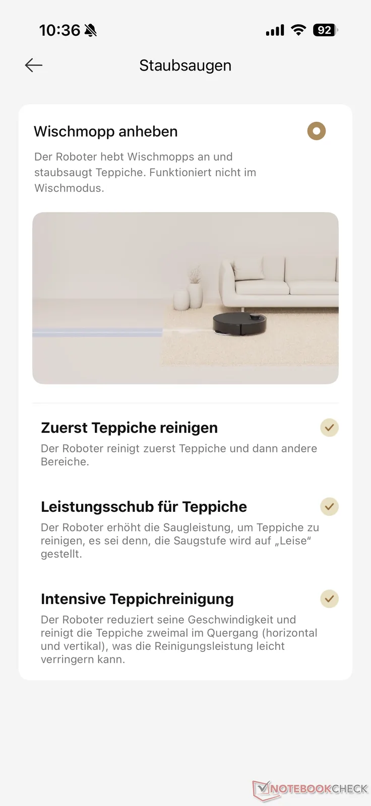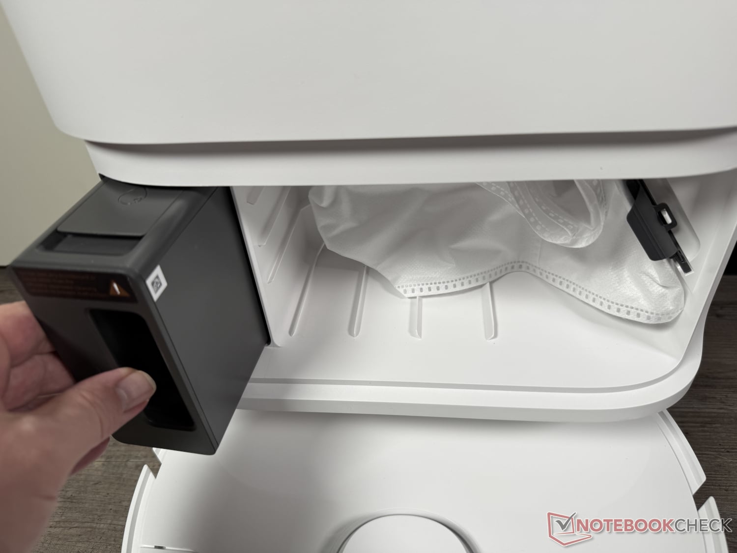 这部分是由于缺乏热水拖把清洁。不过,在我们的日常测试中,拖把一般都能得到彻底清洁。只有当拖把上的污垢比较粗糙时,清洁站才会达到极限。如有必要,可以用洗衣机清洗拖把。