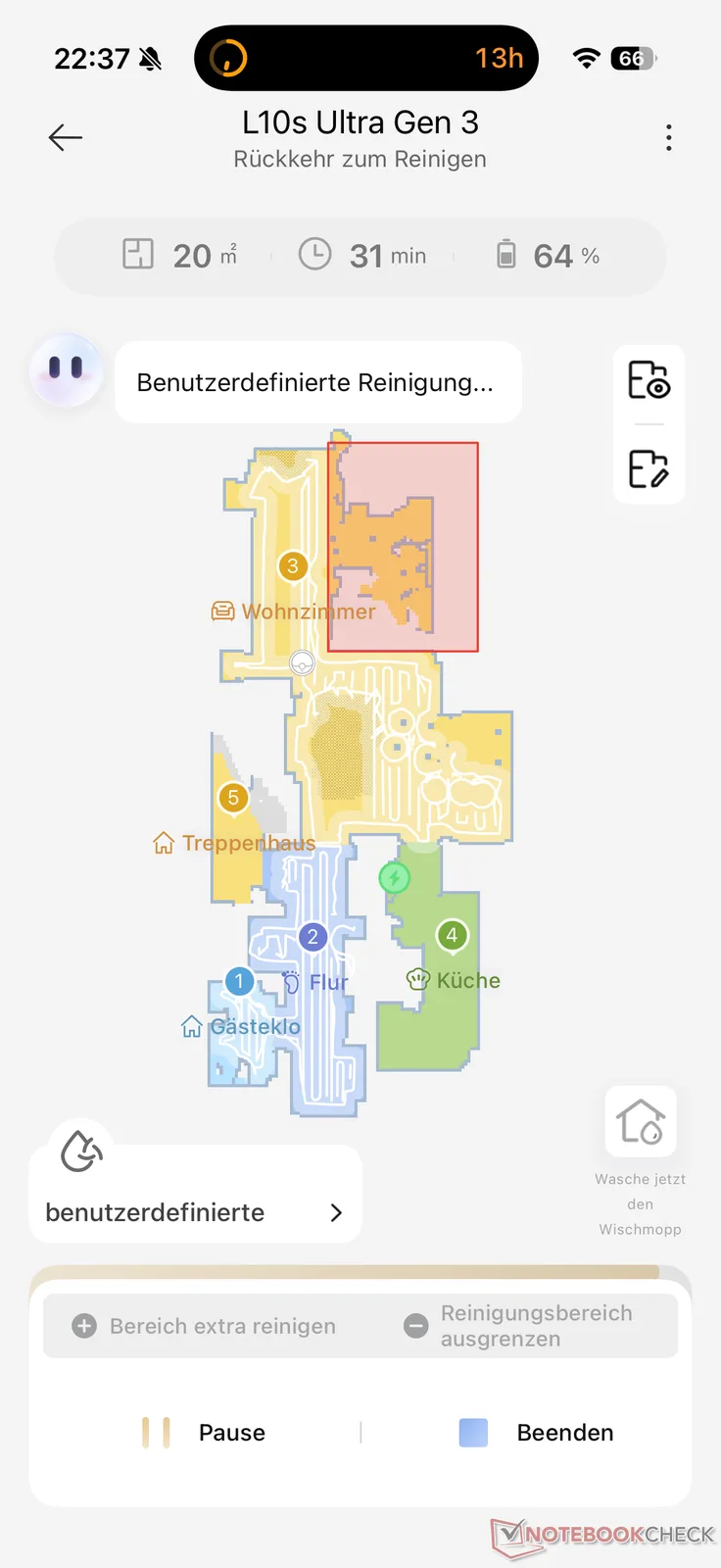 在导航方面,Dreame L10s Ultra Gen 3 在测试中给人留下了非常坚实的印象。在测试环境中,即使是在狭窄的通道中,导航也没有出现任何大问题。就清洁时间而言,机器人吸尘器和拖把不是测试中最快的,但最终还是进行了系统而彻底的清洁。因此,没有什么理由抱怨它。