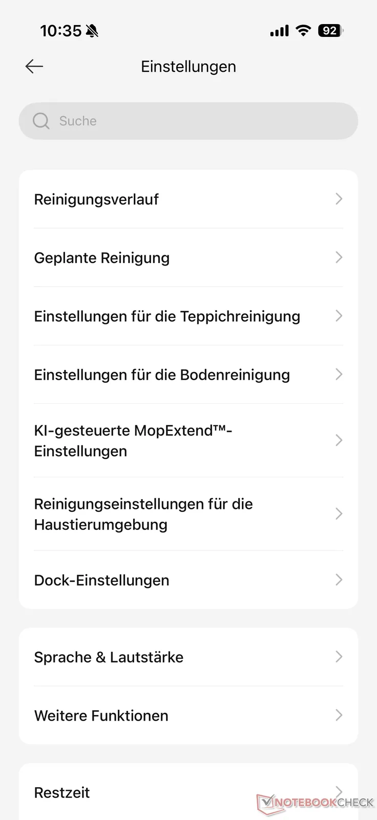除了清洁历史、固件更新等功能外,菜单还提供与地毯清洁、MopExtend 和底座有关的各种其他设置选项。这些选项虽然不如某些顶级型号那么丰富,但完全可以满足正常需求。一个实用的功能是可以选择在夜间不繁忙的时段充电,例如可以享受动态电价。