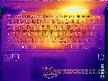 (±) The maximum temperature on the upper side is 42.8 °C / 109 F, compared to the average of 35.9 °C / 97 F, ranging from 21.4 to 59 °C for the class Subnotebook.