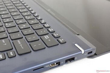 有很多端口可供选择,包括四个USB端口(2个USB-C + 2个USB-A),并支持Thunderbolt 4。我们的主要抱怨在于端口的定位,因为它们被紧密地挤在一起。较厚的USB设备或HDMI线可能会因此而妨碍相邻的端口。