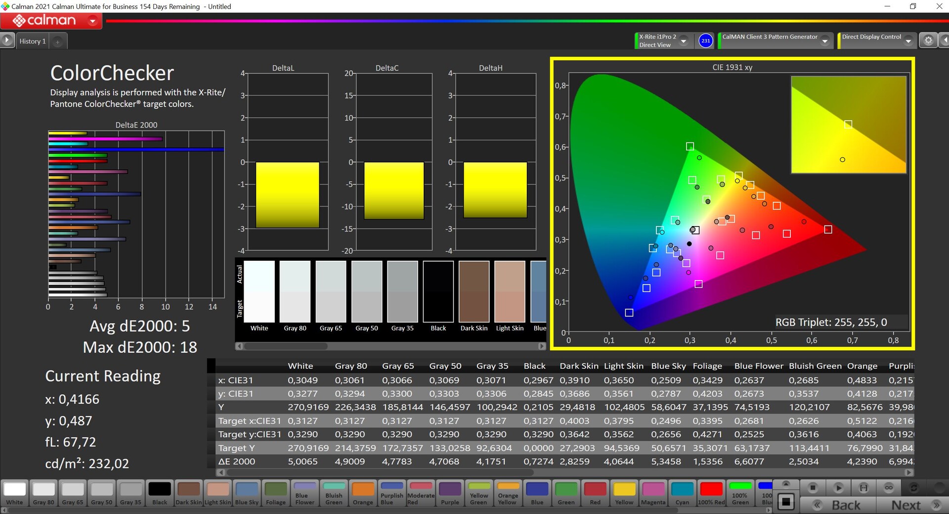 ΔE ColorChecker Calman: 5 | ∀{0.5-29.43 Ø4.78}