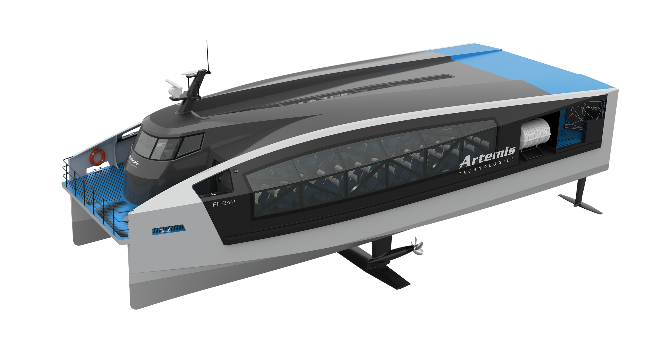 Artemis最近宣布成功向 Beflast 交付了三艘 EF-24 型水翼电动渡船。Artemis EF-24 Passenger 被认为是一种高速渡轮,主要使用水翼在水面上移动,类似于主要在东亚使用的波音 929(喷气翼),但要大得多。