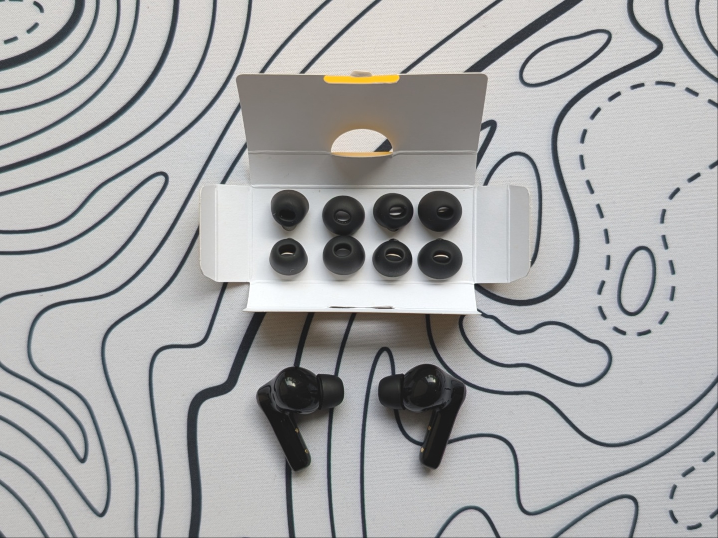 开箱体验简单明了,EarFun Air Pro 4+ 随附小巧的充电盒、不同尺寸的耳塞和一条小型 USB Type-C 充电线。EarFun 除了提供小号、中号和大号耳塞外,还提供超小号和超大号耳塞。