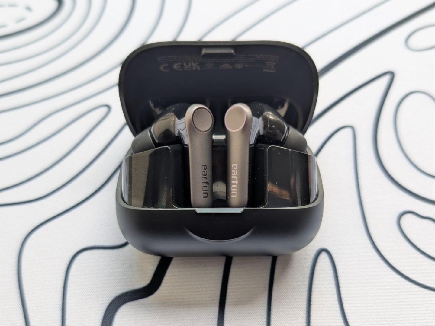 这款无线耳塞获得了 2025 年红点设计奖,EarFun 为此感到自豪,包装盒正面还印有徽章。至于耳塞,它们看起来非常标准,就像其他一些带柄的入耳式耳塞,如 Soundcore 和 Baseus 的耳塞。包装盒相当小巧,便于放在口袋里,但由于正面大部分是盒盖的一部分,单手打开有点困难。关闭盖子时会发出令人满意的 "咔哒 "声,还有一个明亮的 LED 灯显示电池电量和连接状态。