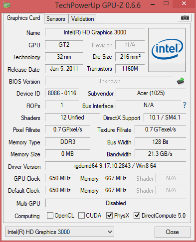 As already mentioned above, Packard Bell's notebook come with two graphics cards, which are automatically switched by means of Nvidia Optimus. While the dedicated GeForce GT 620M from Nvidia is an entry level model, which delivers sufficient performance for light gaming, the Intel HD Graphics 3000 is rather responsible for everyday tasks, but saves energy. The Intel GPU constantly clocks at 650 MHz, but the GeForce can adapt the clock rate to the current work load. In low load scenarios the GeForce GT620M is completely turned off to save energy. If much performance is demanded, it can overclock from the base clock of 625 MHz to 715 MHz. But, this does only work in mains operation. On battery, the clock rate is limited to a maximum of 625 MHz.