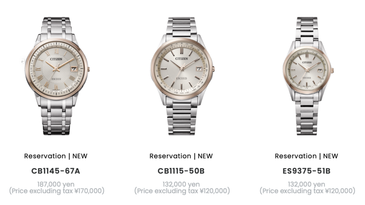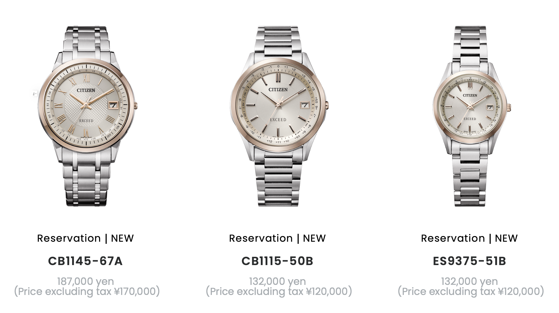 除了新的 8系列西铁城在日本推出了三款全新的 Exceed 系列表款,它们都将于 3 月 5 日上市。这三款新表 -ES9375-51BCB1115-50B和CB1145-67A - 新表款采用 Eco-Drive 太阳能技术和多波段无线电计时功能,并配有纤薄的超级钛金属表壳。