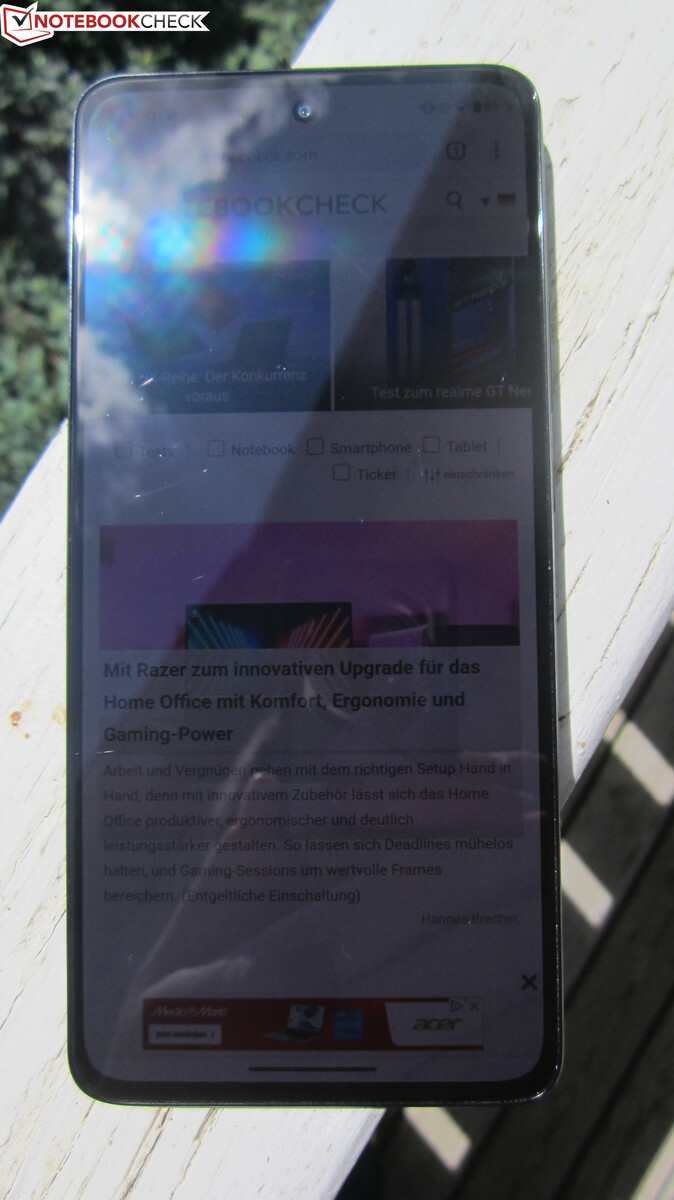 Edge 30的AMOLED屏幕实现了约630 cd/m²的平均亮度,与Edge 20的最大亮度497 cd/m²相比,有了明显的提高。尽管支持HDR10+,但HDR效果在Edge 30中仍然受到限制,因为屏幕不能达到655 cd/m²以上。在对比设备中, 三星Galaxy A53 5G和 小米11 Lite 5G NE,例如,显示亮度可以更好。