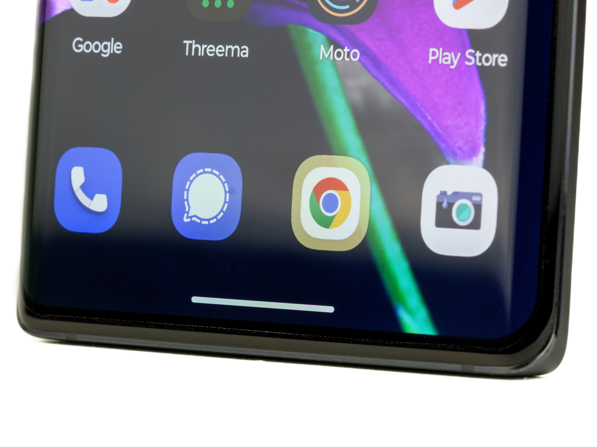 做工令人印象深刻。正面安装了康宁大猩猩5号玻璃用于保护,而背面则使用了一种未指定的哑光玻璃,事实证明它完全可以防止指纹。纤细的铝边给人以稳定的印象,玻璃和铝之间的缝隙紧密而平齐。Edge 30 Ultra能轻松应对扭转的压力。