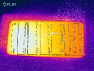 (-) The bottom heats up to a maximum of 45.3 °C / 114 F, compared to the average of 34 °C / 93 F