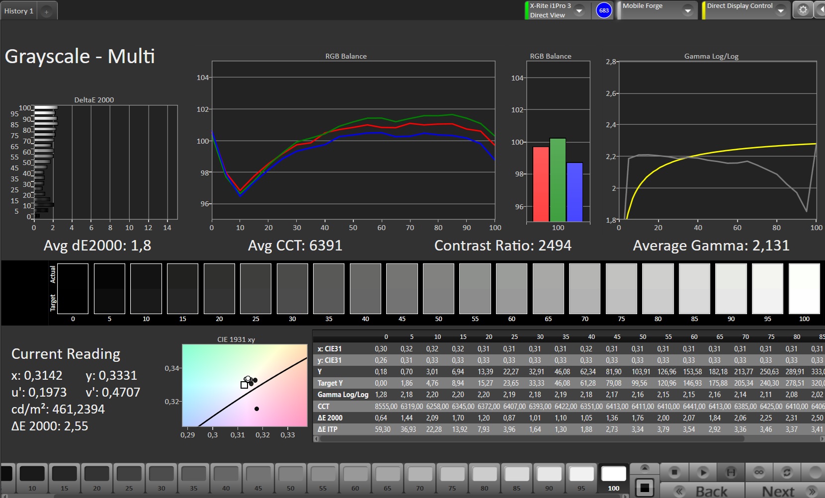 ΔE Greyscale Calman: 1.8 | ∀{0.09-98 Ø5}