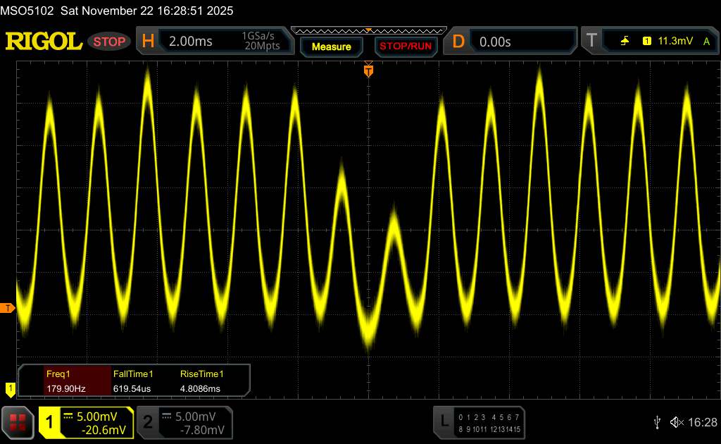 固定缩放级别和不同亮度设置下的测量系列(最低亮度下的振幅曲线看起来很平,但这是缩放造成的。信息框显示的是最小亮度下的振幅放大图)