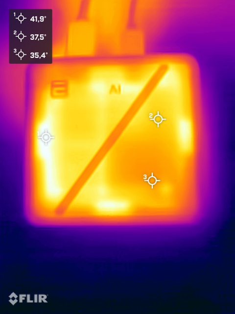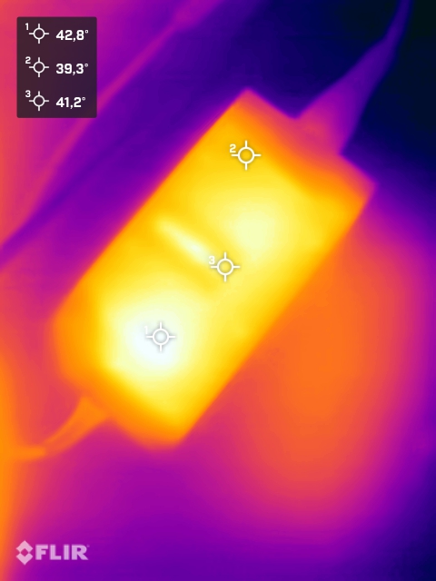 (±) The bottom heats up to a maximum of 43 °C / 109 F, compared to the average of 36.6 °C / 98 F