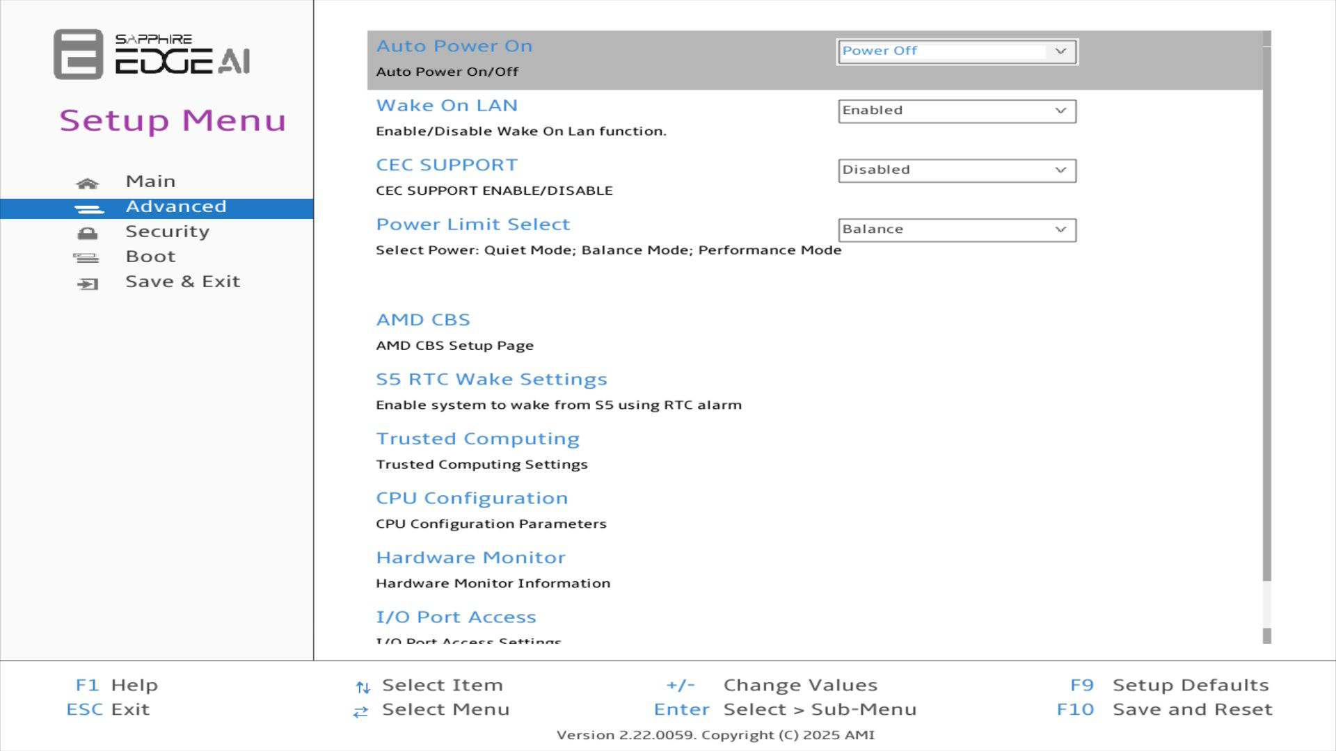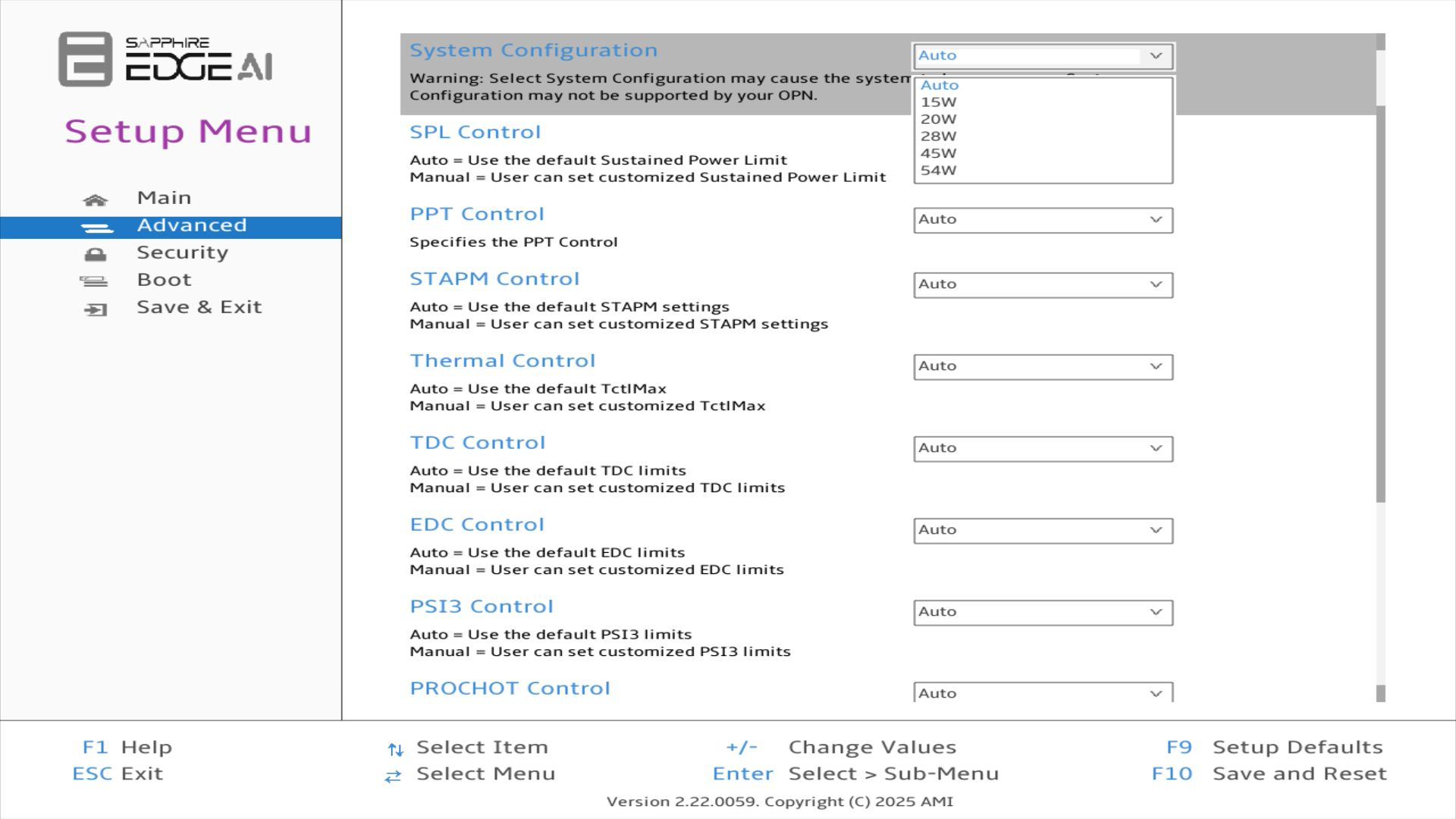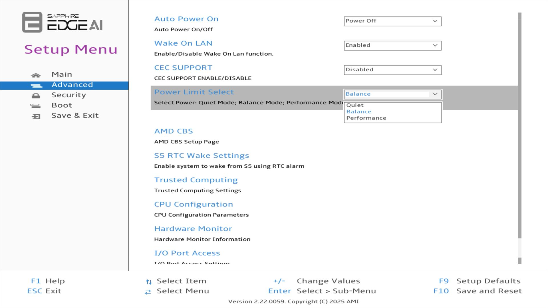 蓝宝石 Edge AI 配备了 AMD Ryzen AI 9 HX 370采用的是 12 核 Zen 5 架构芯片,在单核和多核应用中都能提供令人印象深刻的性能。在出厂设置中,SoC 的持续功耗为 35 瓦,因此性能与竞争对手相当。虽然可以在 BIOS 中选择不同的性能配置文件,但在日常使用中,即使可以测量到差异,也很难察觉。