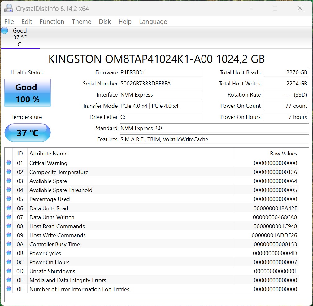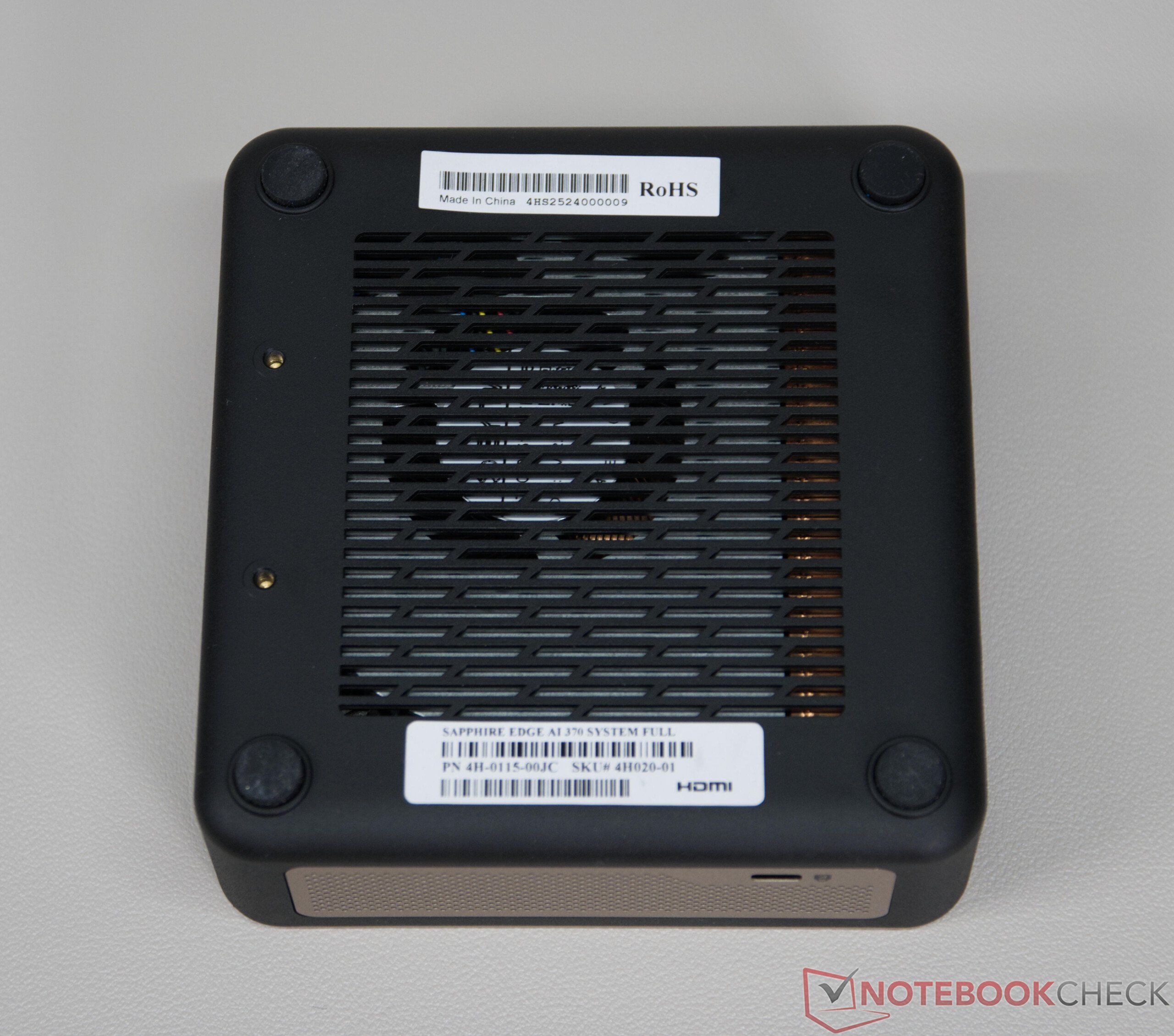 Sapphire Edge AI 通常不带大容量存储设备,因此存储介质的选择取决于购买者。提供给我们的测试设备配备了来自金士顿的固态硬盘,可提供稳定的日常性能。值得强调的是,在负载情况下的稳定性能得益于机身顶部的被动散热装置。设备本身为两个大容量存储设备提供了空间。