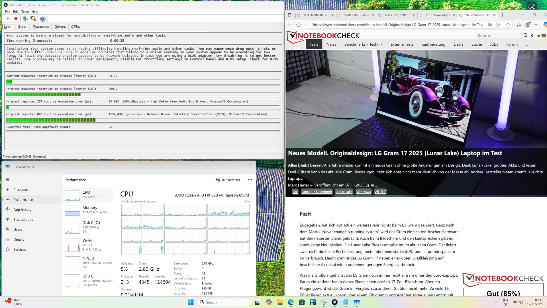 | DPC Latencies / LatencyMon - interrupt to process latency (max), Web, Youtube, Prime95 | |