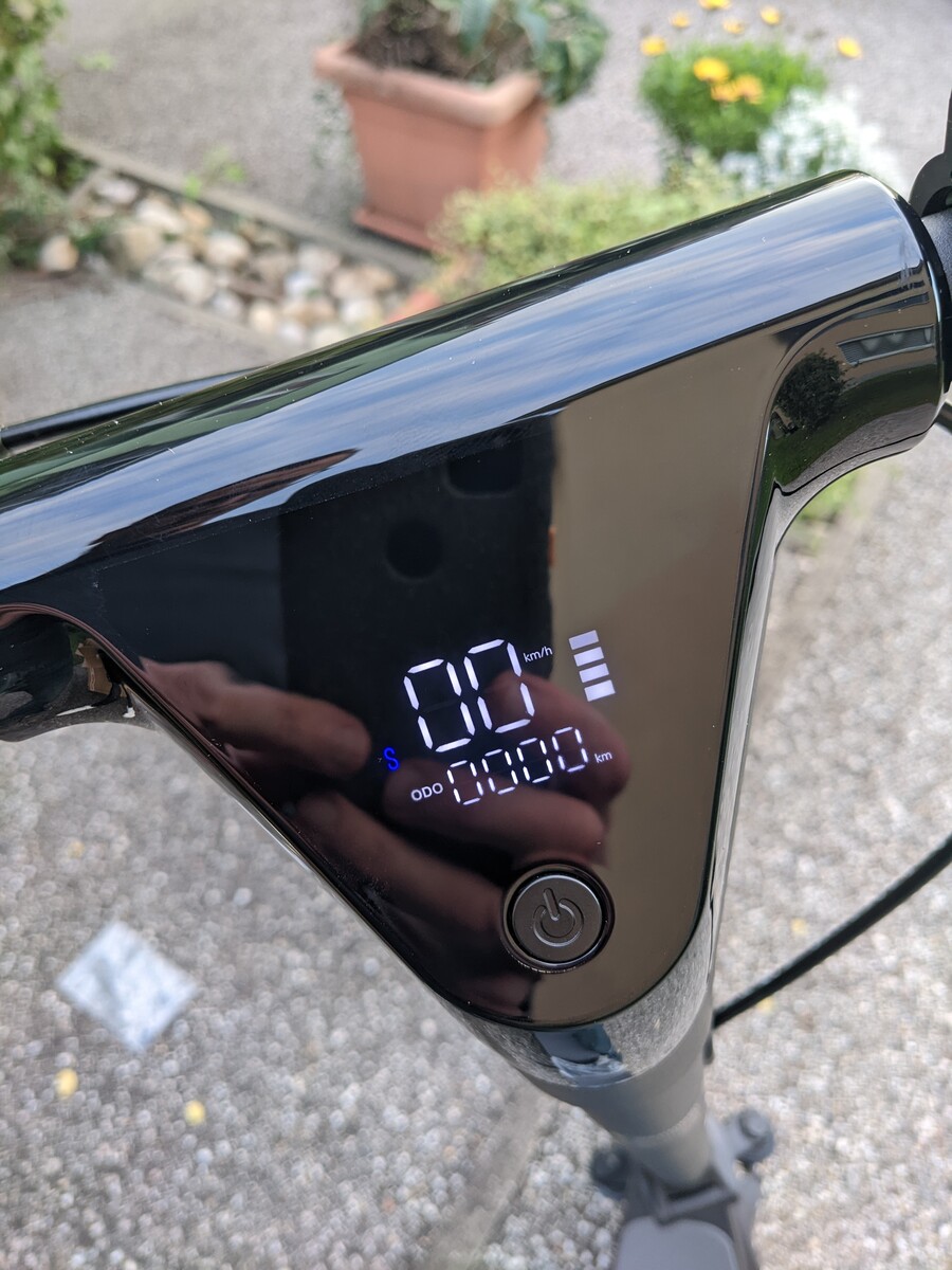 另一次骑行,这次是在对电池明显不利的条件下(室外温度10℃,50°F),在1.5巴(约30%)时开始,在大约500米(1640英尺)后结束。动力下降,滑板车最初只能以低速运行,然后骑手被迫完全下车。这意味着,在容量的下三分之一处,剩余的范围很难衡量,而且车载显示屏不能为你提供可靠的数据,特别是在不利的、较冷的天气条件下。我们建议在使用前对滑板车进行充电,并将其停放在室温环境中,以防止在早晨出现任何不好的意外。