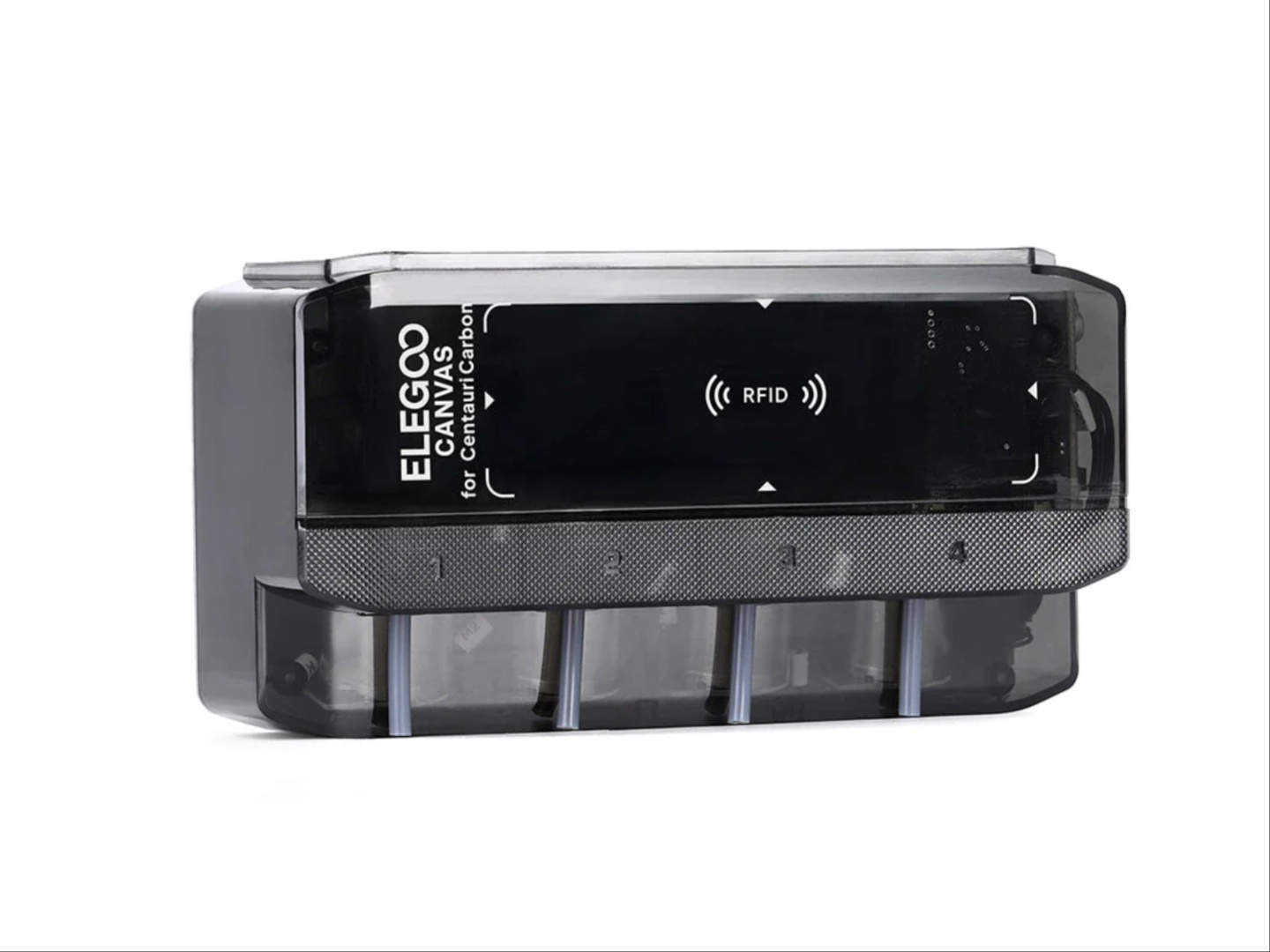 该附件为 Centauri Carbon 带来了多色打印和其他功能。除了能打印多达四种颜色外,Canvas 系统还带来了 RFID 灯丝检测、防缠绕和自动填充功能。
