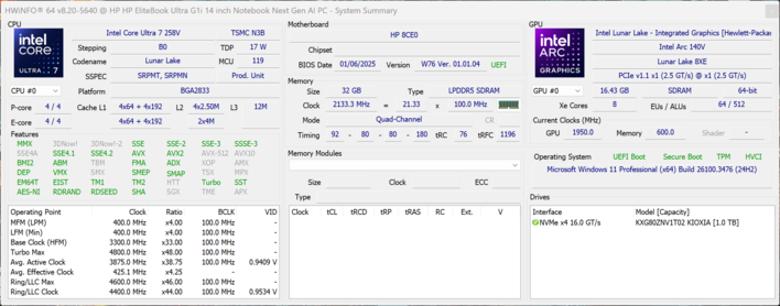 性能 - 配备 32GB 内存的 Lunar Lake 处理器