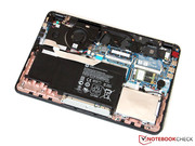 Like the keyboard, the touchpad is also inset in the aluminum cover of the base unit by several millimeters, which helps to clearly mark the input surface from the surrounding palm rest. Unfortunately, the slightly glossy finish of the Synaptic pad only works well with perfectly dry hands - sweaty fingers will cause considerable resistance. Multi-touch gestures like pinch-zoom are no problem, thanks to the impressive 11 x 7 centimeter (4.33 x 2.76 inch) dimensions, and can be configured according to user preferences in the driver panel.