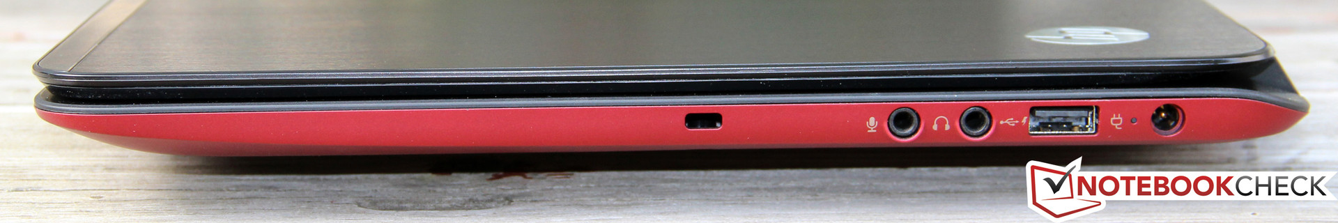 The rest of the ports on the Envy 6 are standard fare: HDMI, Gigabit Ethernet, a 2-in-1 card reader (SD, MMC) and the obligatory audio sockets - we did not find any particular highlights like a DisplayPort. The user even has to make do without an analog VGA port.