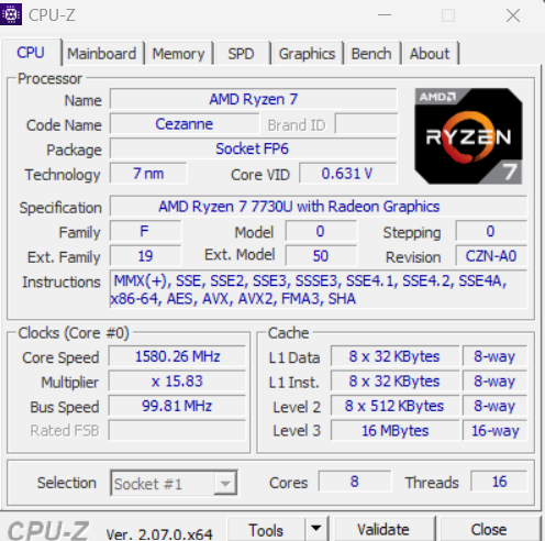 Ryzen 7 7730 CPU 更为先进,但与去年的 R7 5825U 相同。在 2023 年,其性能仍然不错,可以跟上竞争设备的步伐,但如果采用 Ryzen 7 6800U 或 Ryzen 7 7840U 配置变体,性能可能会大幅提升。