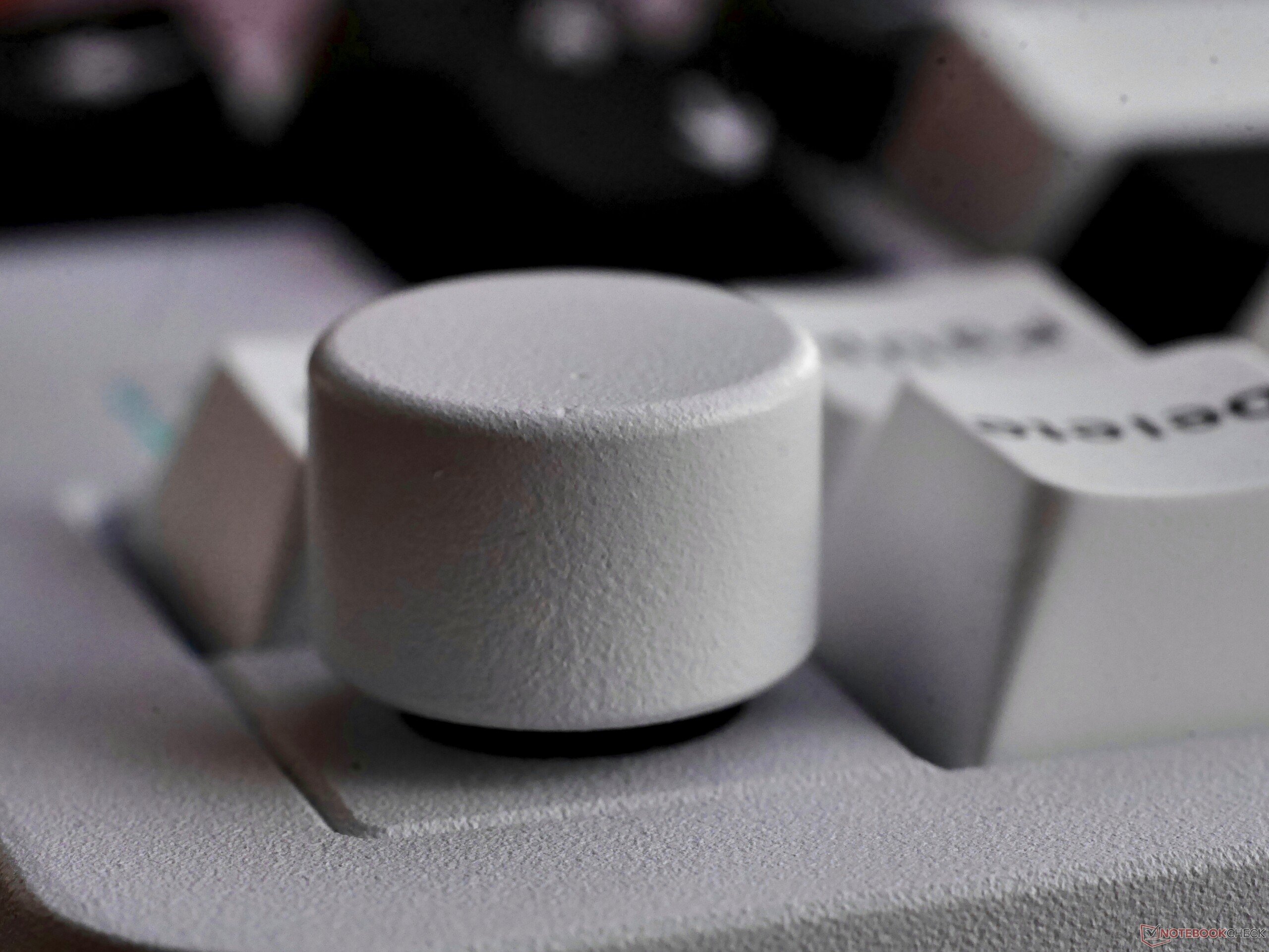 VIA 兼容性是 Galaxy68 的亮点之一,用户可以重新映射整个键盘,包括默认设置为音量控制(按下静音)的可编程旋钮。事实证明,这对创建宏特别有用,宏甚至可以分配给旋钮功能。旋钮有正凹槽,使用起来感觉良好,不过有一点左右晃动,而且旋钮底部与外壳之间的缝隙有点大。
