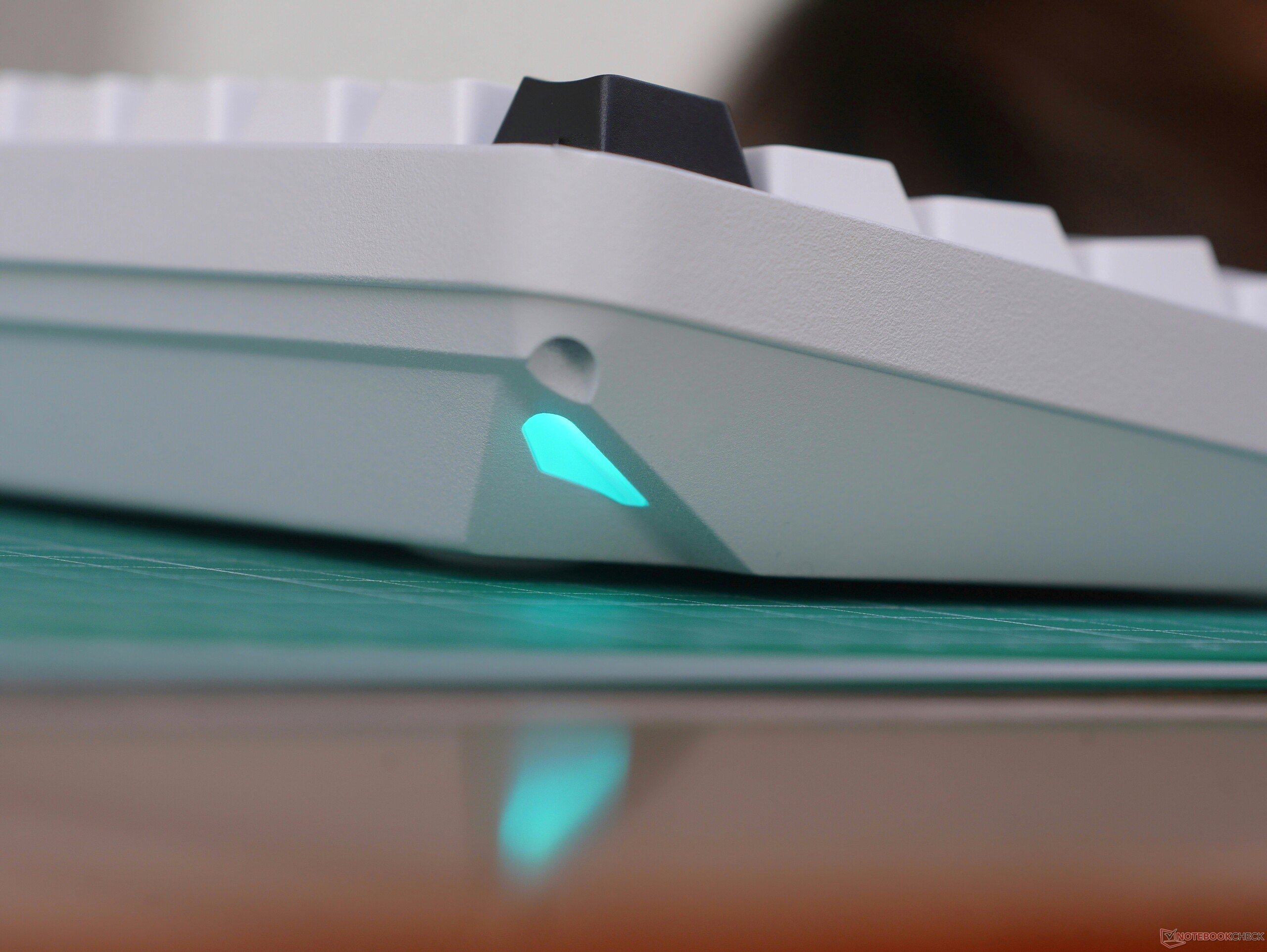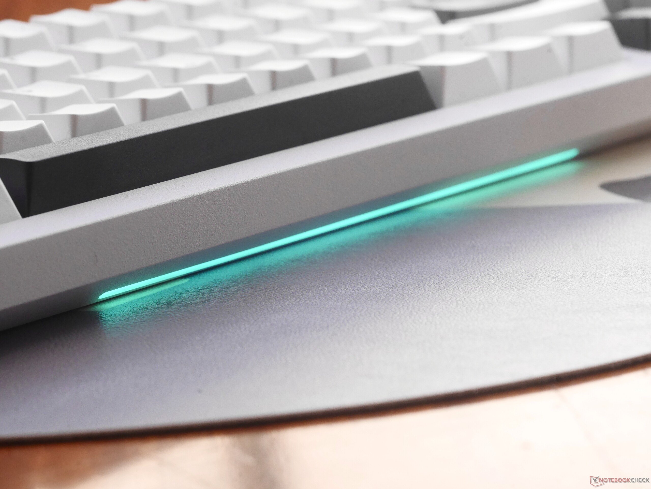 与我们之前评测过的采用数字键盘的 Galaxy 100 和我们之前评测过的以及Galaxy 系列的其他产品相比,Galaxy68 的美学风格有所不同。独特的 MDA 外形键帽和以太空为主题的设计装饰(如装饰性亚克力天线盖和外壳装饰板)已不复存在。取而代之的是普通的 Cherry 键帽轮廓和普通的铝制外壳,后角和空格键下方的底边有一些 RGB 指示灯。