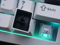 抛开设计方面的批评不谈,我们在评测 Galaxy68 时遇到的最大问题是它的空格键稳定器。虽然空格键开箱后的声音非常清脆,尽管有些空洞,但只要我们取下键帽再装上,空格键稳定器就会变得非常嘎吱作响。这很可能通过添加润滑剂就能轻松解决,但还是很烦人。