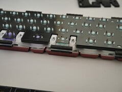 所有部件都是用夹子固定在一起的,而且外壳非常坚硬,您需要用铲刀工具或牺牲信用卡才能打开键盘。即便如此,在我们第二次拆卸 TH40 的过程中,其中一个卡扣还是被咬断了。幸运的是,即使少了一个卡扣,机壳仍然能牢固地闭合。