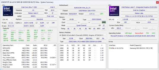| Eurocom Blitz Ultra 16 Arc 8-Core, Ultra 7 155H | Lenovo ThinkBook 16 G7 IML Graphics 4-Core iGPU (Arrow Lake), Ultra 5 125U, SK hynix HFS512GEJ4X112N | MSI Summit A16 AI Plus A3HMTG Radeon 880M, Ryzen AI 9 365, Samsung PM9C1 MZVL81T0HELB-00BTW | Acer Aspire 16 A16-51GM-77G2 GeForce RTX 2050 Mobile, Core 7 150U, WD PC SN740 SDDQNQD-1T00-1014 | Lenovo ThinkPad T16 Gen 3 21MN005XGE Graphics 4-Core iGPU (Arrow Lake), Ultra 5 125U, Lenovo UMIS RPETJ1T24MHP2QDQ | Asus VivoBook Pro 16 GeForce RTX 3050 Ti Laptop GPU, i7-12700H, Intel SSD 670p SSDPEKNU010TZ | |