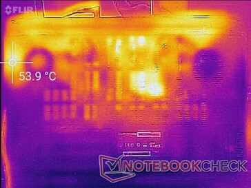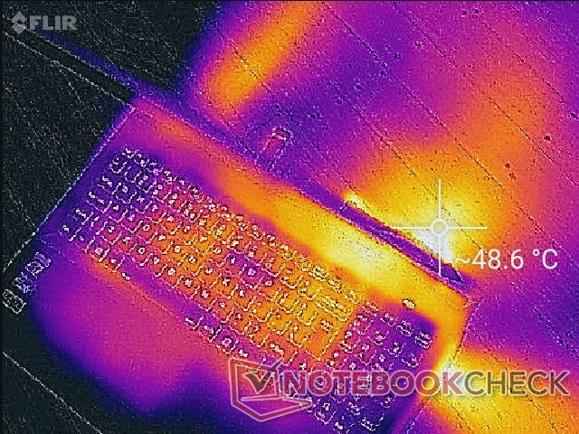 (-) The maximum temperature on the upper side is 48.8 °C / 120 F, compared to the average of 40.4 °C / 105 F, ranging from 21.2 to 68.8 °C for the class Gaming.