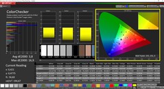 我们的分析(CalMAN和X-Rite i1 Pro 2)显示,在交付状态下,可见的蓝色偏光与过冷的色温相结合。我们通过校准使偏色得到控制,但同时亮度又进一步下降到225cd/m²。色彩表现也有一些改善,但对于严肃的图像编辑来说,偏差仍然太高,因为色彩空间覆盖率也太低(sRGB只有63%)。校准的ICC文件可以在右上角的窗口中找到,就在屏幕照度图形旁边。
