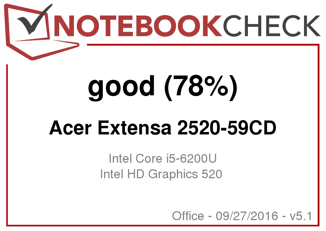 宏碁的Extensa 2520是一款基本型的15.6寸办公本。它所配备的处理器能够满足大部分用户的需求。但就像上面所说的,它的酷睿i5处理器没有办法发挥出它所有的性能,而是与酷睿 i3-6100U 的性能在同一水平线上。我们猜测我们拿到的或许是一台有故障的设备。无论这台笔记本运行在什么负载情况下它总是十分安静地运行而且基本上不会有过热现象的发生,它500G的机械硬盘提供了足够的存储空间。而且将机械硬盘换位固态硬盘是可行的,但这需要将外壳打开因为它并没有设置维修窗。整体上它的键盘给我们留下了很好的印象,而且续航能力十分出色。但另一方面,它的雾面屏幕却不尽人意,宏碁为它配备了一块亮度不足,对比度偏低且可视角度有限的屏幕。