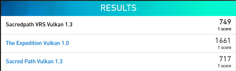 Exynos 1580 的 Xclipse 540 在 Sacred Path Vulkan 1.3 中的得分为 717,在 Sacred Path Vulkan 1.3(带 VRS)中为 749,在 The Expedition 中为 1661。相比之下,Exynos 1480 (Xclipse 530图形处理器得分 1,191, 1,556和 614 在相同的测试中,结果分别为 1,191、1,556 和 614。从根本上说,测试结果喜忧参半,但这也是预生产硅片所能预料到的。