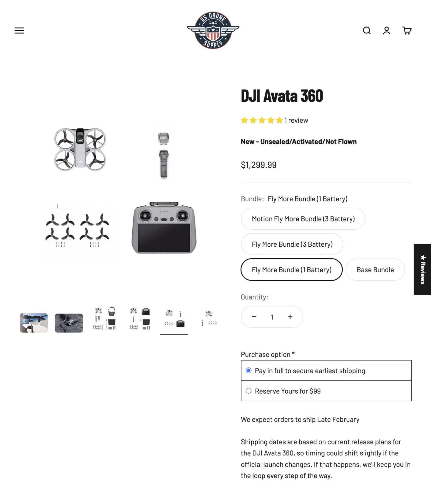 请注意,US Drone Supply 有可能在一定程度上抬高了这些价格。无论如何,该零售商表示预购产品将于 2 月底开始发货。换句话说,Avata 360 的正式发布应在未来几周内。根据最近的表现,中国将是 Avata 360 上市的第一个市场。综上所述,我们预计大疆创新将在下周左右开始预告Avata 360在中国的发布。