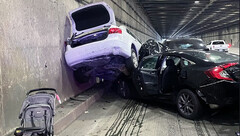 这辆Model S决定并入快车道,打开了一个左闪灯,然后移到那里,开始突然减速到7英里/小时的速度,就像被拉过来一样,导致后面的车辆相互碰撞或撞上。特斯拉本身和司机相对来说没有受到伤害,但后面的一些车辆无法在快车道上及时做出反应,以相当快的速度撞上了车堆中的最后一辆车。一些观察家认为,隧道起点处最近安装的一个警告灯可能被误认为是交通灯,而随后媒体试图在完全相同的地方重现FSD的混乱,但没有成功。