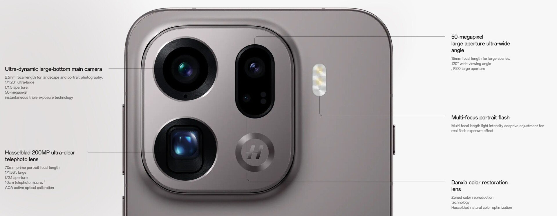 除了装在 8.25 毫米纤薄机身中的 7500 毫安时巨型电池外,配备 200 万像素三星传感器的长焦变焦摄像头也是 OPPO Find X9 Pro 的突出特点。200 MP 哈苏长焦相机在传感器校准和光学设计方面进行了共同开发,以适应由 Oppo 全新 Lumo 图像引擎驱动的全新哈苏大师相机系统,该系统可控制 Find X9 Pro 的以下相机硬件和功能: