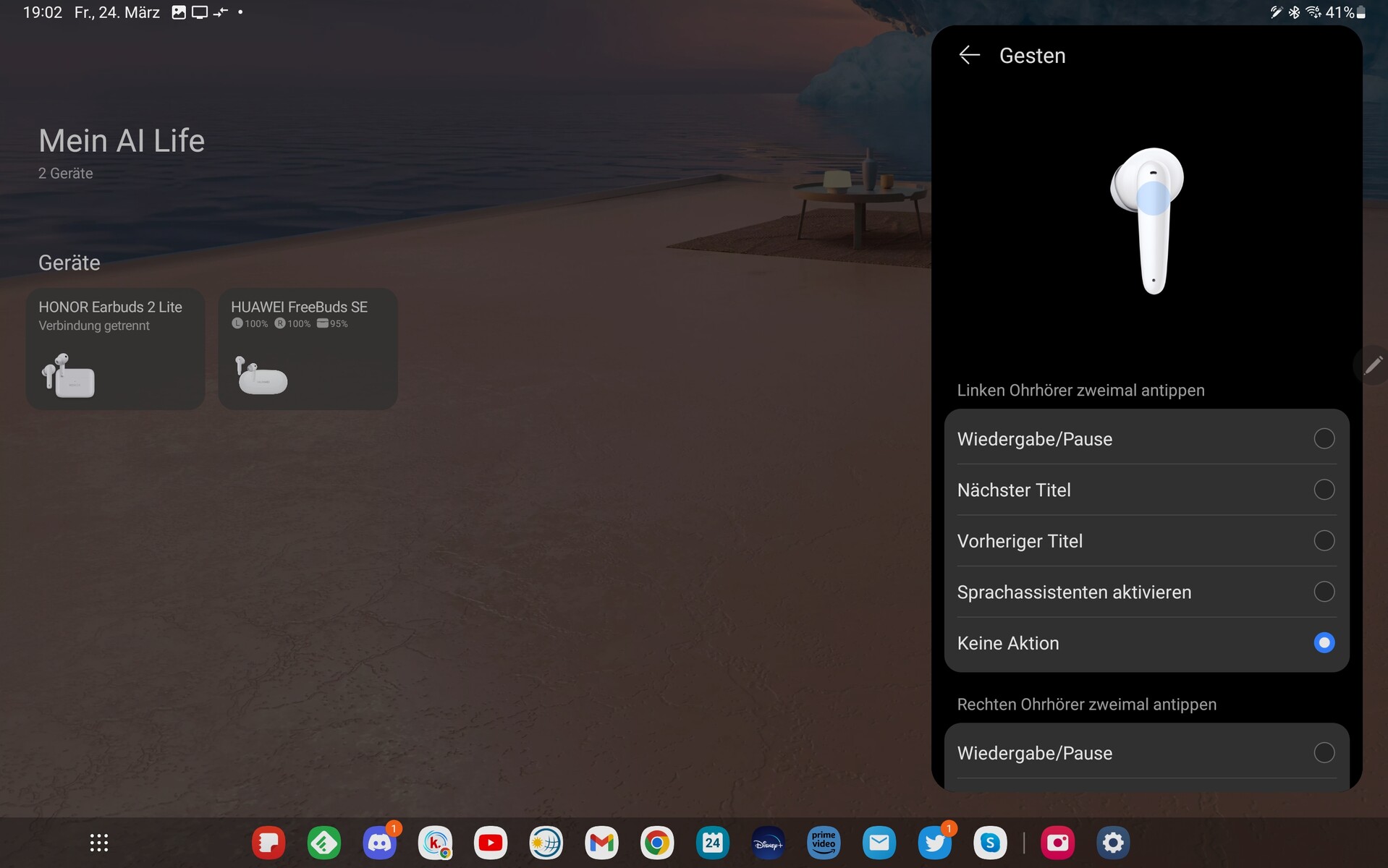 FreeBuds SE不支持谷歌快速配对,与Android 智能手机的设置必须以 "经典 "方式进行--通过外壳内的配对按钮;顺便说一下,这也适用于Apple 手机。使用华为智能手机则更容易,只要至少安装了EMUI 10或Harmony OS 2.0。在这种情况下,打开手机壳时,FreeBuds SE会直接配对。