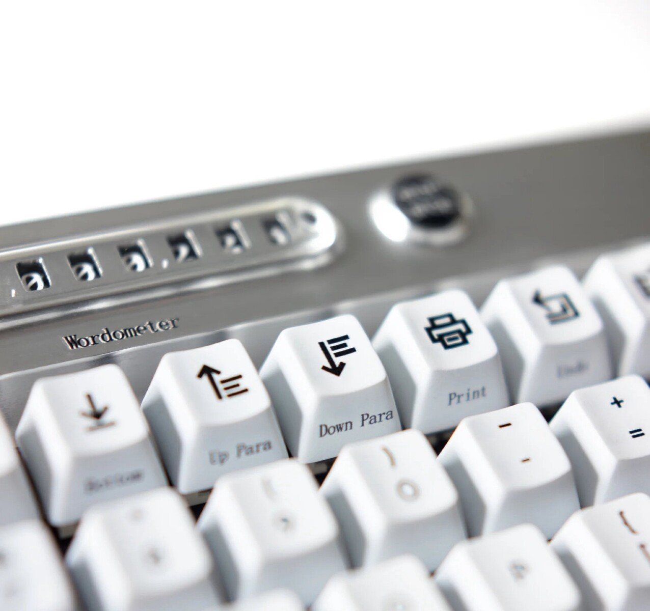第二个显示屏是所谓的 "字数计",它是一个字数计数器,显示上次重置后输入的字数。用户可以通过 "开始-停止 "按钮随时暂停单词计数器,这样它就不会对网络搜索或聊天信息等进行计数。两个显示屏都使用由电机驱动的滚轮来显示 0 到 9 的相应数字。这样,屏幕不仅能显示信息,还能以触觉和听觉方式跟踪书写进度。